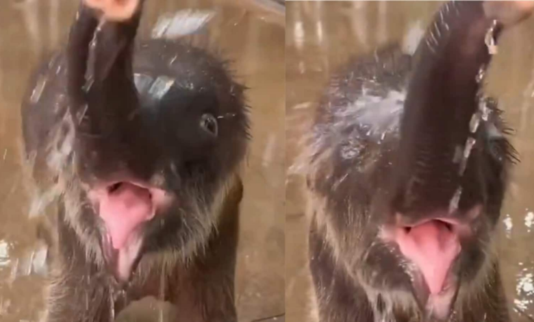 ‘Gentle side of nature’s giants’: Heartwarming video shows ba elephant enjoying its first bath | Trending