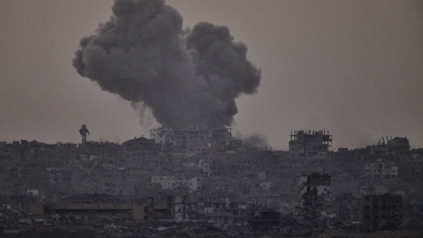Smoke rises amid buildings, that were destroyed during the Israeli ground and air operations, following an Israeli military strike in the northern Gaza Strip, as seen from southern Israel, Friday, Oct. 3, 2025. (AP Photo/Leo Correa)