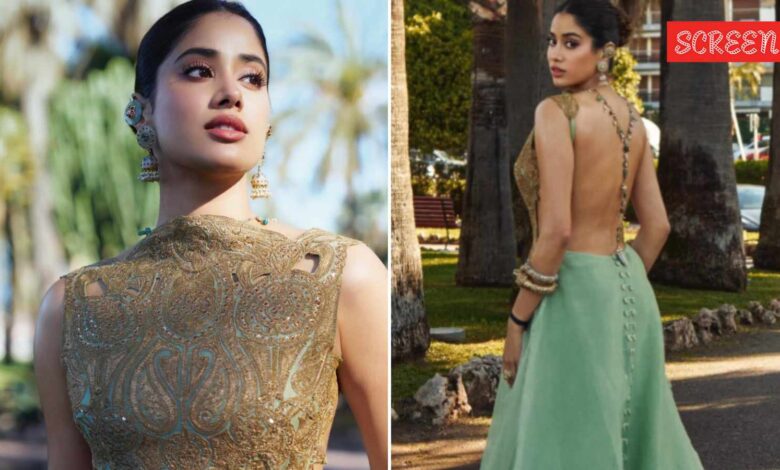 Janhvi Kapoor honours Indian heritage at Cannes in backless mint green gown adorned with traditional jewellery. See photos | Bollywood News
