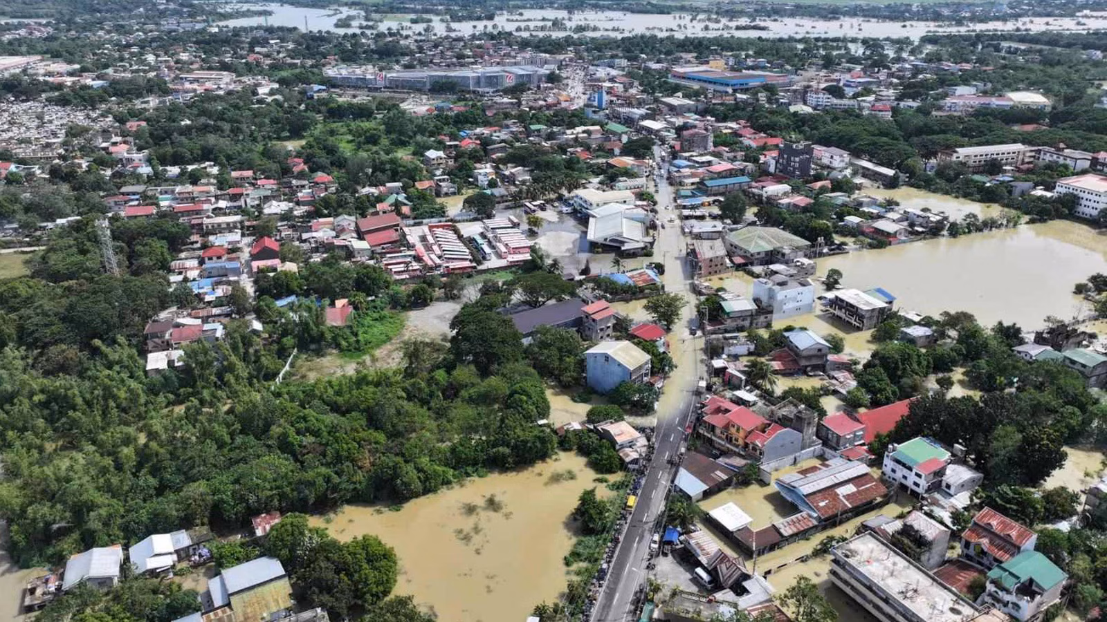 In this photo provided the Cagayan Police Provincial Office, a town is surrounded floodwaters after the onslaught of Typhoon Fung-wong in Cagayan province, northern Philippines. (Cagayan Police Provincial Office via AP)